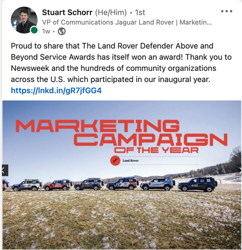 Developed and executed Defender’s U.S. reintroduction campaign, winning Campaign of the Year.